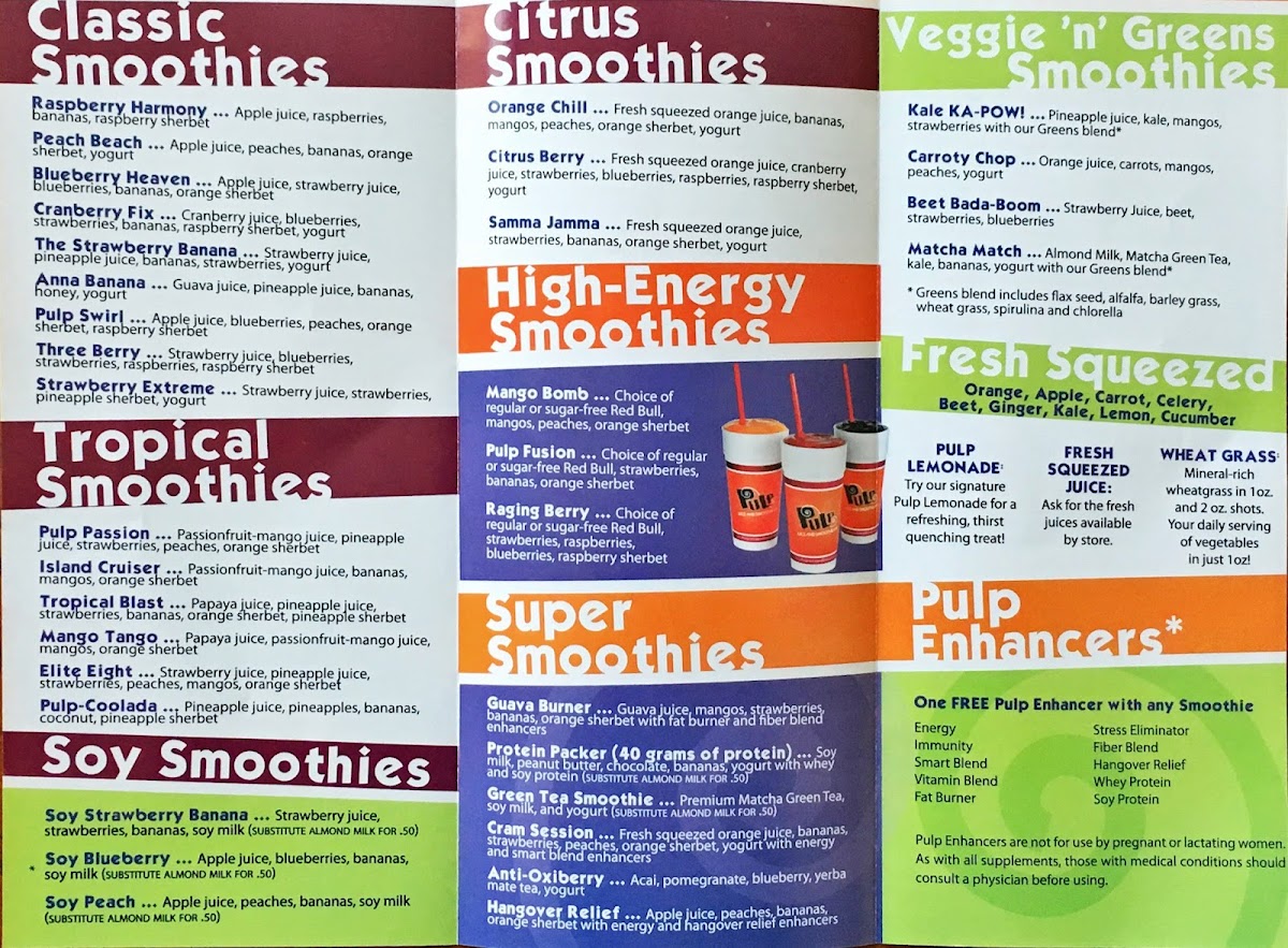 Welcome to Pulp Juice and Smoothie Bar in Akron, where refreshing flavors meet healthy choices. Nestled at 2279 W Market St, this vibrant spot offers a menu that is both diverse and delicious.